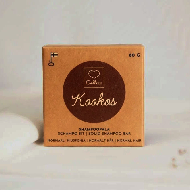 Kookosmaidon tuoksuinen shampoopohjainen pala normaaleille ja kuiville hiuksille.