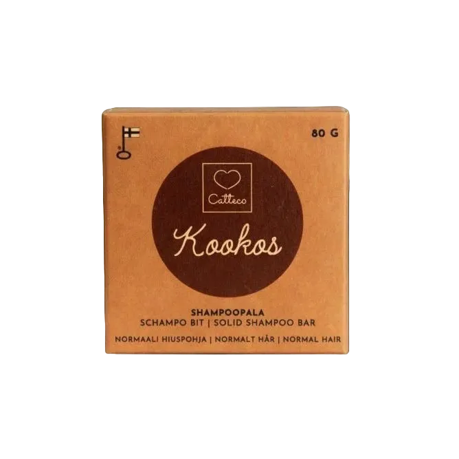 Kookosmaidon tuoksuinen shampoopohjainen pala normaaleille ja kuiville hiuksille.