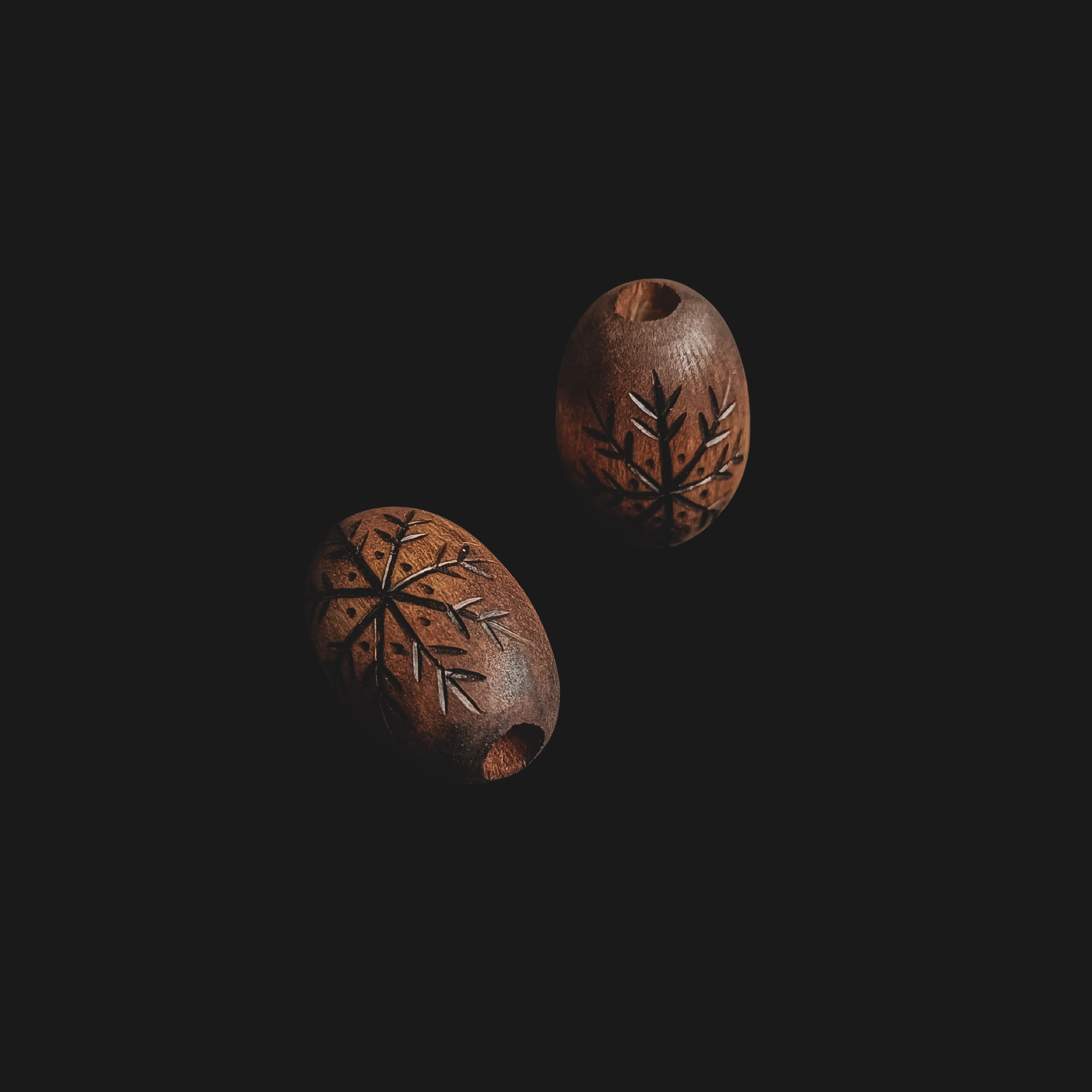 Polttokuvioidut puuhelmet. Jokainen helmi on uniikki.